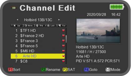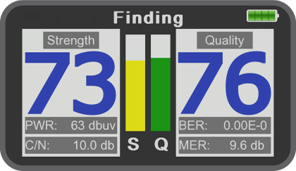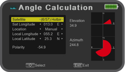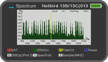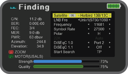 Satellite scan; manual (TP), auto (Satellite) blind and super blind
